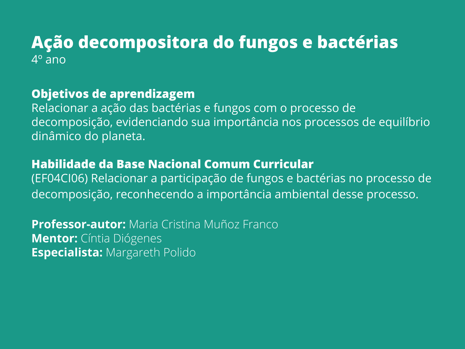 Plano de aula 4o ano Conhecendo melhor os fungos e bactérias