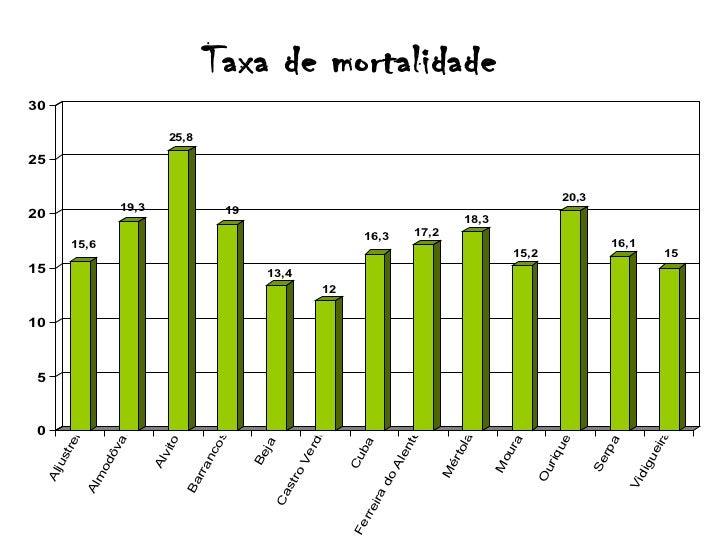 Em relação à taxa de mortalidade, houve também uma queda, apesar de ter sido menos expressiva que a da taxa de natalidade. No ano de 2000, a taxa de mortalidade era de 6,67‰. Em 2005, essa.
