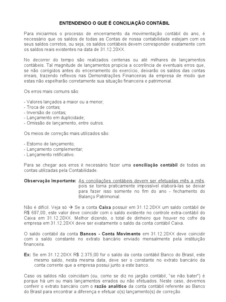 Entendendo o que é Conciliação Contábil PDF Indústrias de serviços