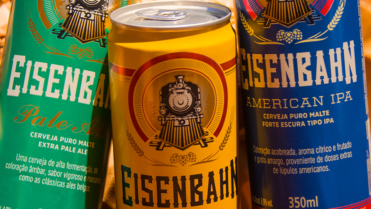 A cerveja Eisenbahn pode ser encontrada em embalagens de 600ml, long neck, latas e barril de chopp, além das séries comemorativas e especiais. Imagem ilustrativa/Canva Pro Em 2008, ela foi adquirida pela Schincariol (que mais tarde passou a se chamar Brasil Kirin), vindo a fazer parte do portifólio da Heineken a partir de 2017.