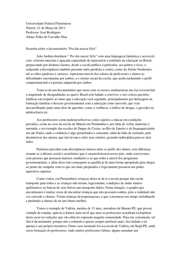 Pro Dia Nascer Feliz Resenha Critica EDUCA