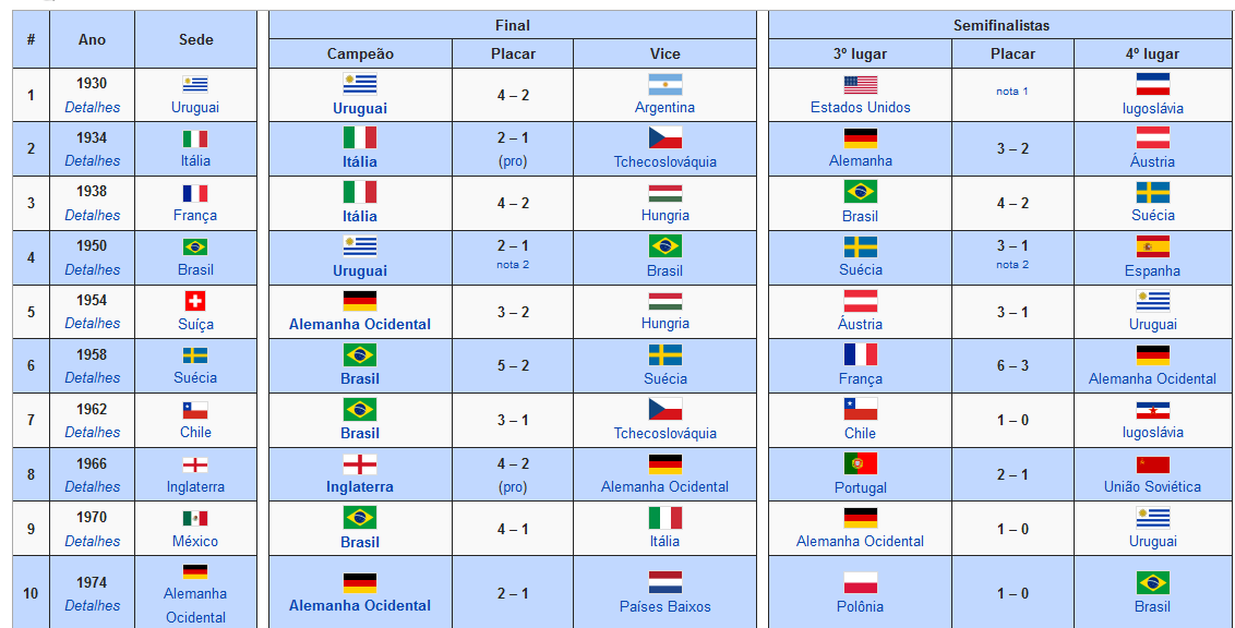 Os maiores vencedores da Copa do Mundo de 1930 até hoje! Copa do mundo, Copa do mundo de