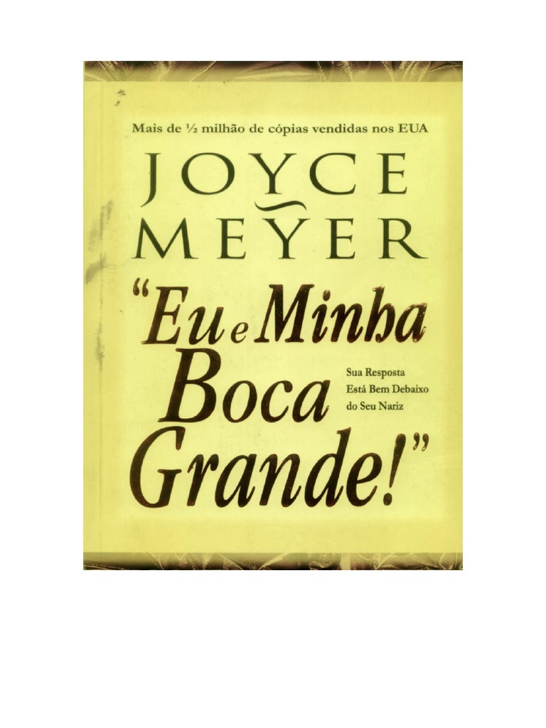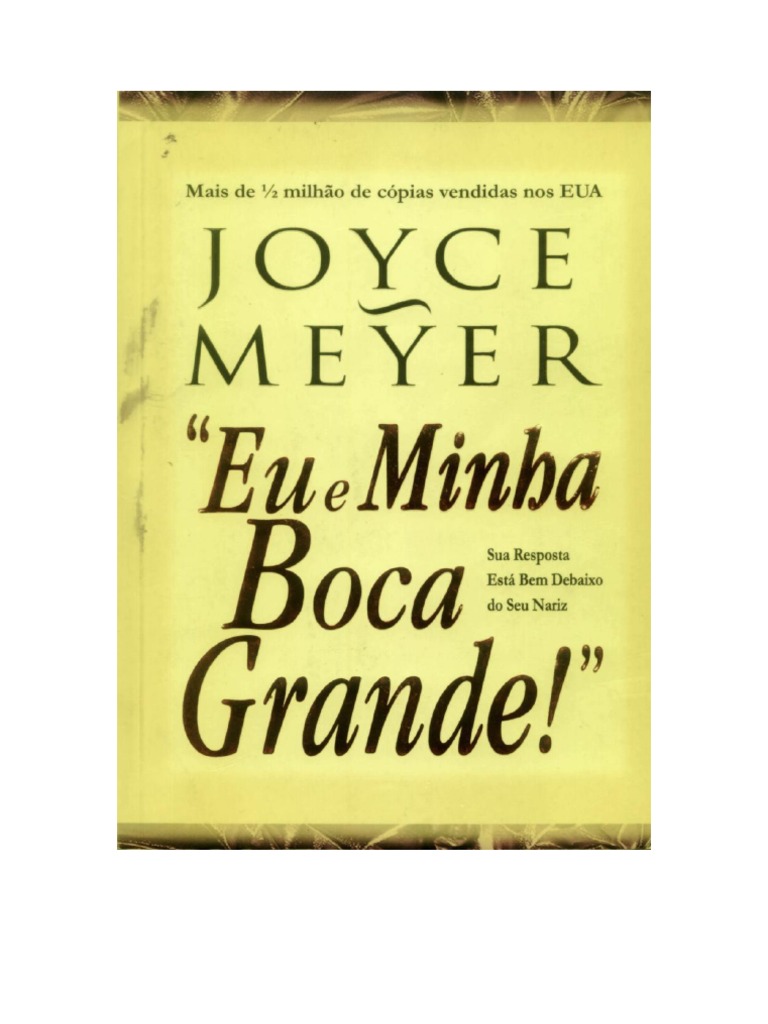 Joyce Meyer. 4.38. 5,486 ratings131 reviews. No livro Eu e Minha Boca Grande, da autora Joyce Meyer, publicado pela editora Bello, faz-lhe a pergunta: Sua boca está ocupada falando sobre todos os problemas de sua vida? Parece que sua boca tem vontade própria? Coloque sua língua em um curso de imersão para a vitória.