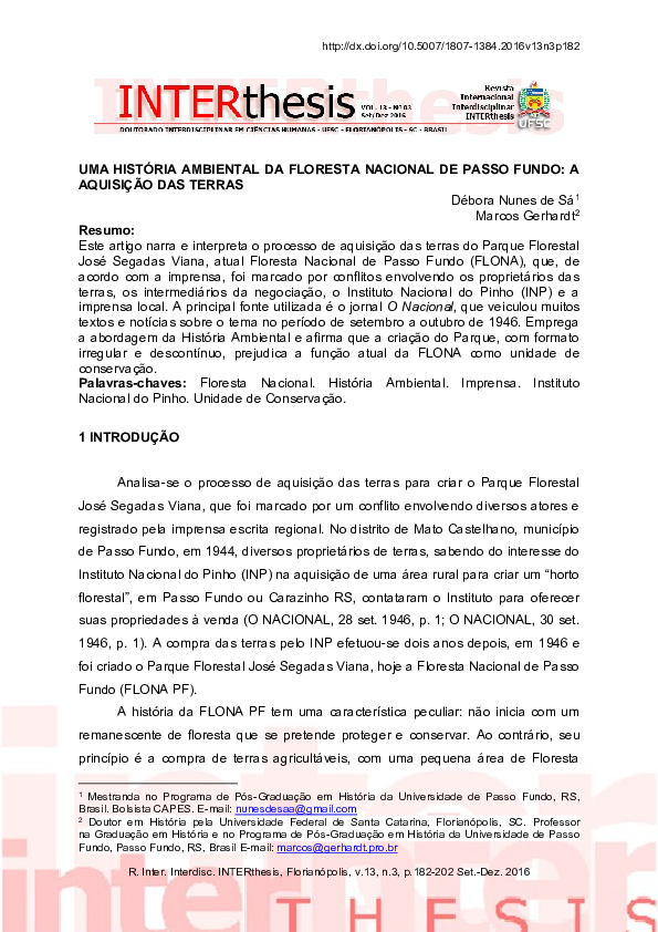 (PDF) Uma história ambiental da Floresta Nacional de Passo Fundo a aquisição das terras