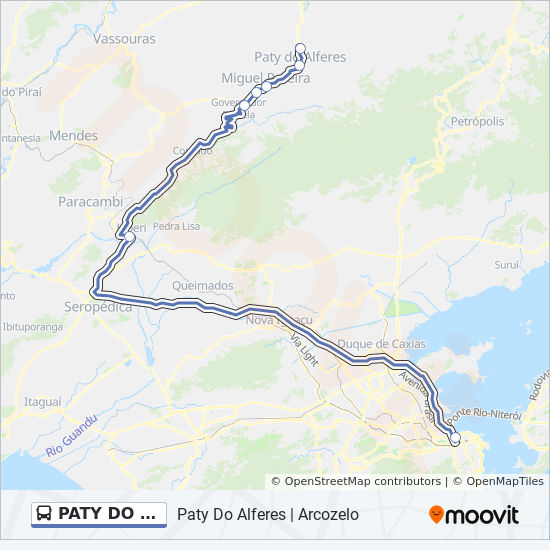 Rota da linha paty do alferes arcozelo rio de janeiro horários, paradas e mapas Paty Do