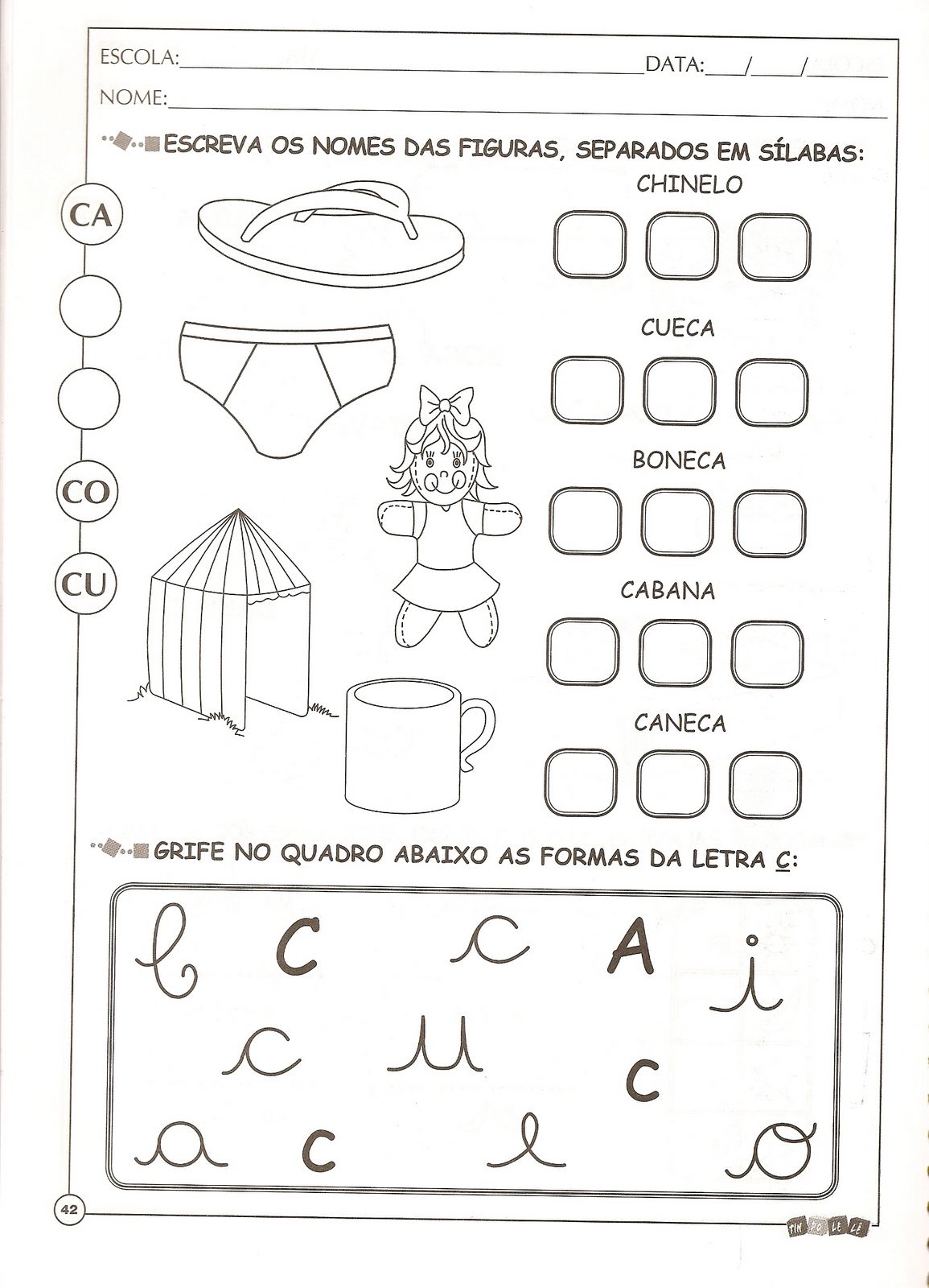 FICHA COM AS FIGURAS Atividades letra e, Atividades com o alfabeto, Letra c