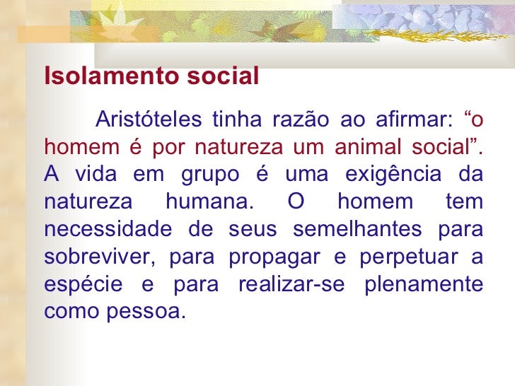 Segundo Aristóteles; “O homem é um animal social”, isso torna necessário ao homem viver em