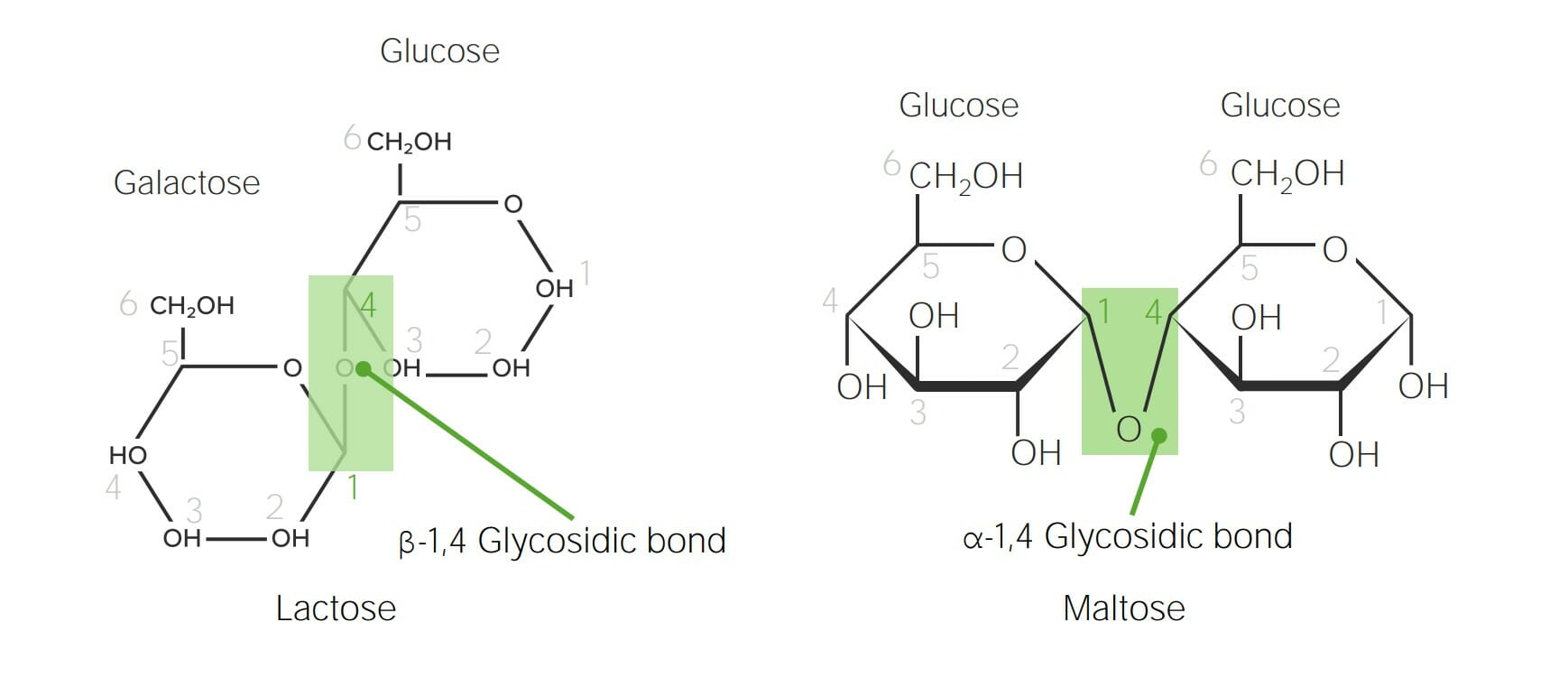 Nas aldoses, o carbono anomérico será o carbono 1 (C1) pois o carbono do grupo aldeído encontra-se na ponta da estrutura linear da molécula, e nas cetoses corresponde ao carbono 2 (C2) pois o carbono do grupo cetona está na segunda posição. A forma cíclica dos monossacarídeos é mais estável que a forma linear em solução aquosa se o.