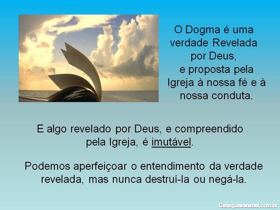 O que é dogma Catecismo da Igreja Católica? Segundo o "Catecismo da Igreja Católica", um dogma é "uma forma que obriga o povo cristão a uma adesão irrevogável de fé". Ou o fiel aceita o que o dogma formula ou ele não é parte do "povo cristão" -termo usado no catecismo como equivalente ao de igreja.