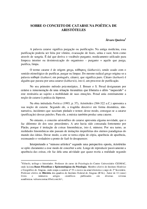 (PDF) SOBRE O CONCEITO DE CATARSE NA POÉTICA DE ARISTÓTELES Juliene Carvalho Academia.edu