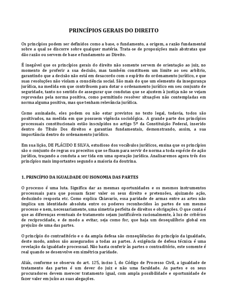 A seguir, apresentaremos alguns dos principais princípios gerais do direito e suas implicações legais: 1. Princípio da Legalidade: Segundo este princípio, ninguém será obrigado a fazer ou deixar de fazer algo senão em virtude de lei. Isso significa que o Estado só pode impor obrigações e restrições aos cidadãos se houver uma lei.