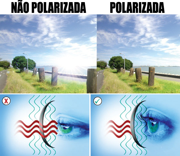 Polarização é o ato de canalizar os raios de luz [ 1], que se espalham de maneira difusa no ambiente, de modo a bloquear sua incidência em determinada direção, o que evita a sensação de ofuscamento. Pode acontecer com o auxílio de filtros polarizadores, mas no caso das lentes o responsável é um filme polarizador feito com.