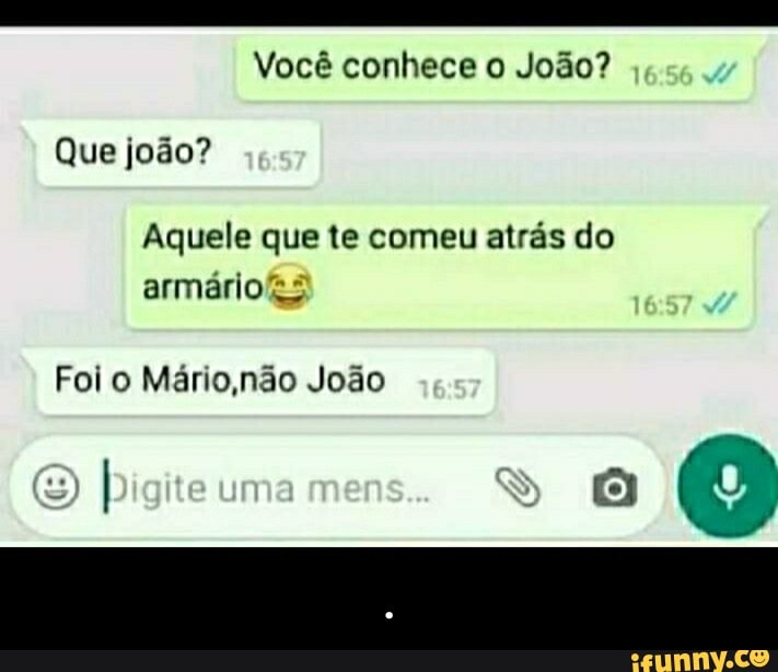 Você conhece o João? Que joão? Aquele que te comeu atrás do armário 1657 Foi o Mário ,não João
