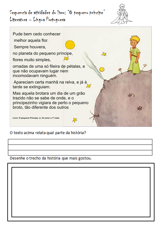 Sequência de atividades do livro "O Pequeno Príncipe" — SÓ ESCOLA
