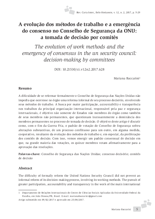 (PDF) Baccarini, M. A evolução dos métodos de trabalho e a emergência do consenso no CSNU, 2017