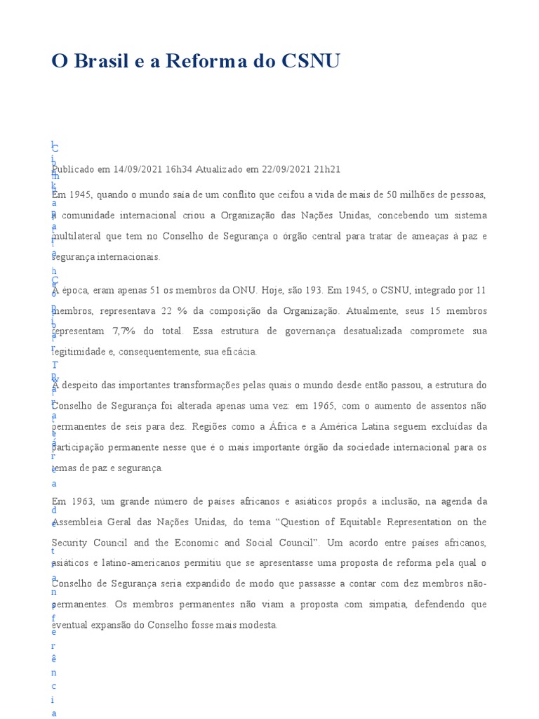 O Brasil e A Reforma Do Csnu PDF Conselho de Segurança das Nações Unidas Política mundial