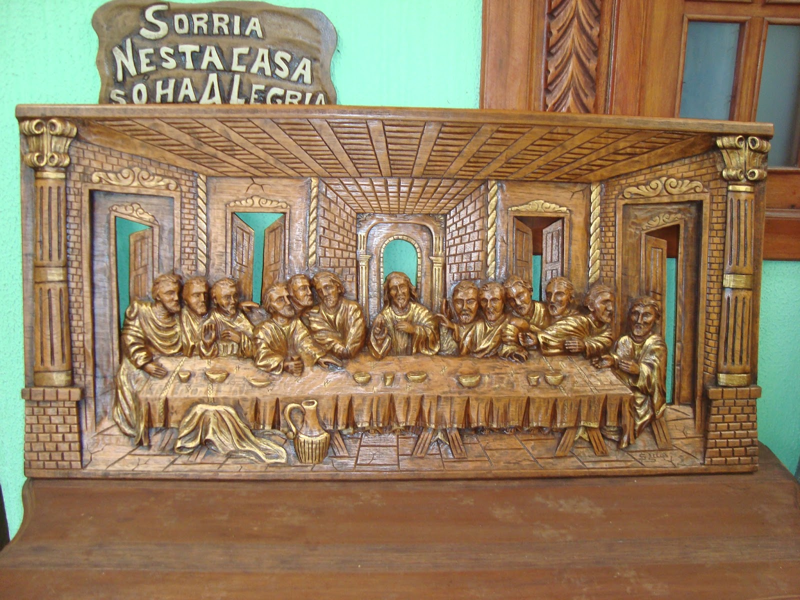 Quadro Madeira Entalhada Santa Ceia Artesanato Rústico no Elo7 Ciano Store (F3A52D)