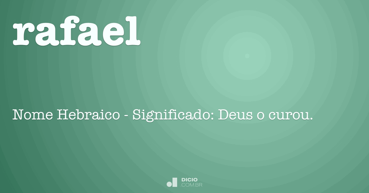 Origem do nome Rafael: história e significado. O nome Rafael tem origem hebraica e significa "Deus curou". Na Bíblia, Rafael é um dos sete arcanjos e é conhecido como o protetor da saúde. Segundo a tradição cristã, ele teria ajudado Tobias a curar a cegueira do pai e a encontrar um bom casamento para sua filha.