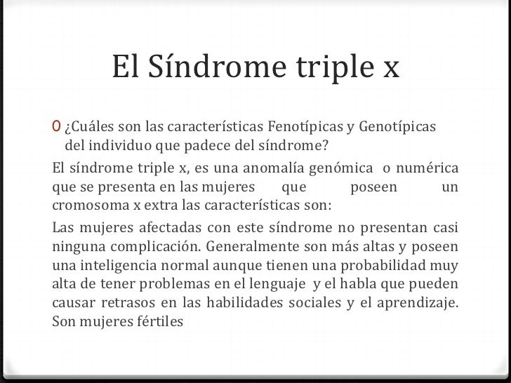 A síndrome do Triplo X não é assim tão conhecida na sociedade, porém, se trata de uma condição genética considerada comum entre as mulheres: uma a cada 800. Sintomas da Síndrome do Triplo X. As características mais comuns de quem tem a síndrome também não são muito agravantes durante a infância, o que muitas vezes faz com que.