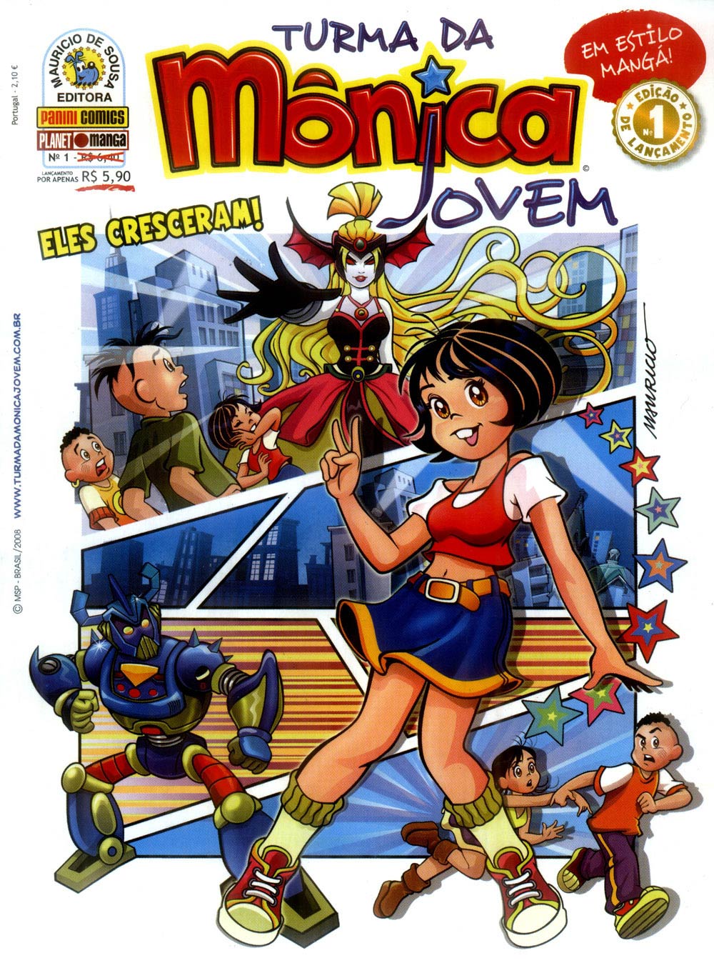 Turma da Mônica Jovem 1ª Série - n° 1. 538. coleções. 22. sonho de consumo. 146. já leram. 6. estão lendo. 12. não leram. 1. estão relendo. 9. irão ler. 0. desistiram. Publicado em: agosto de 2008. Editora: Panini. Licenciador: Mauricio de Sousa. Categoria: Revista Periódica. Gênero: Mangá. Status: Título encerrado. Número de páginas: 132.