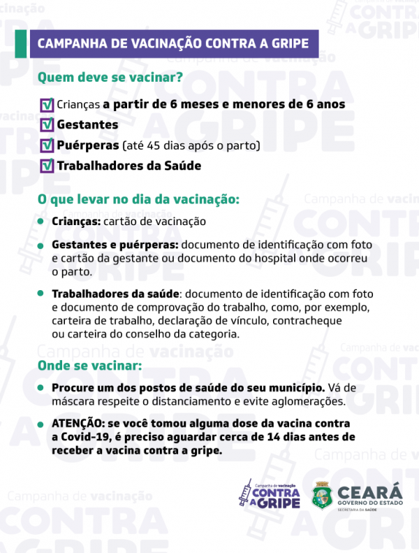 Campanha de vacinação contra a gripe atenderá servidores do Cambeba Governo do Estado do Ceará
